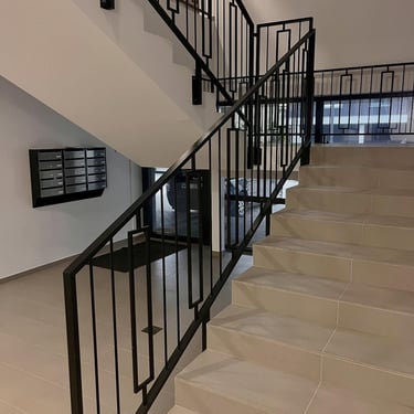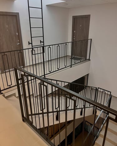 Vidaus ir lauko laiptai, laiptų turėklai, porankiai.