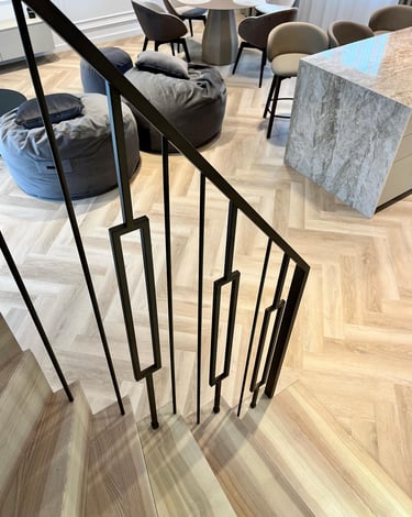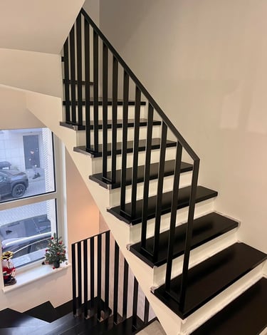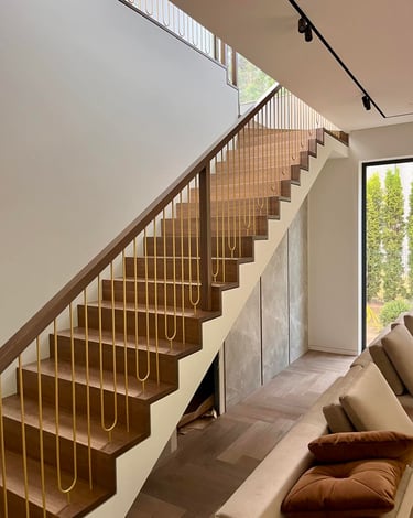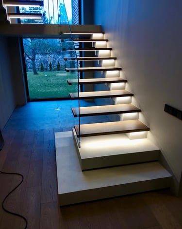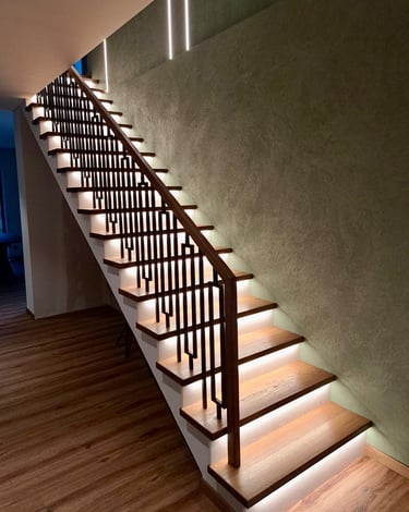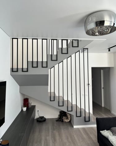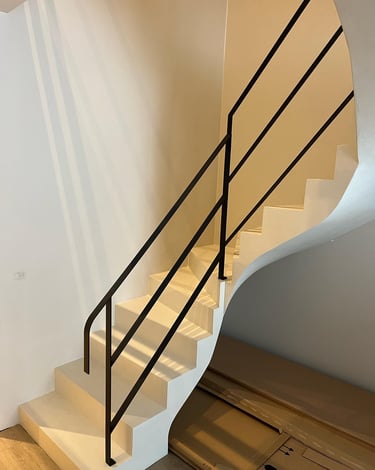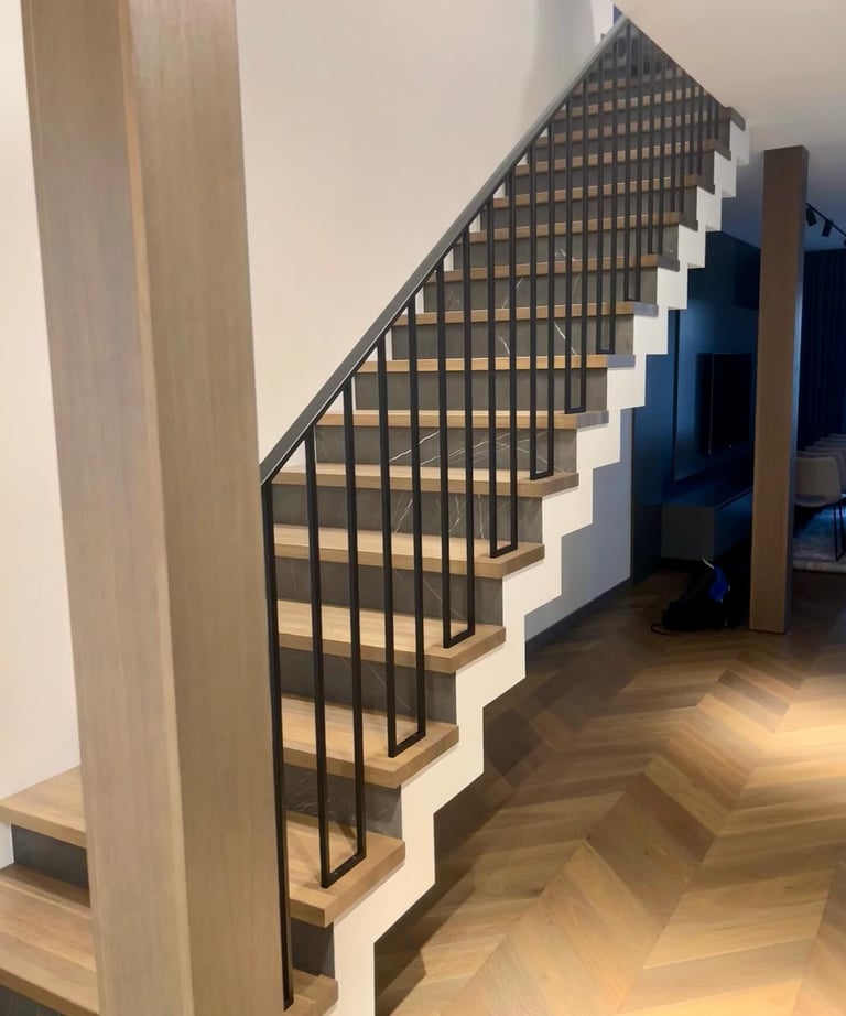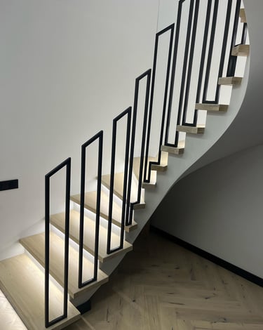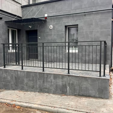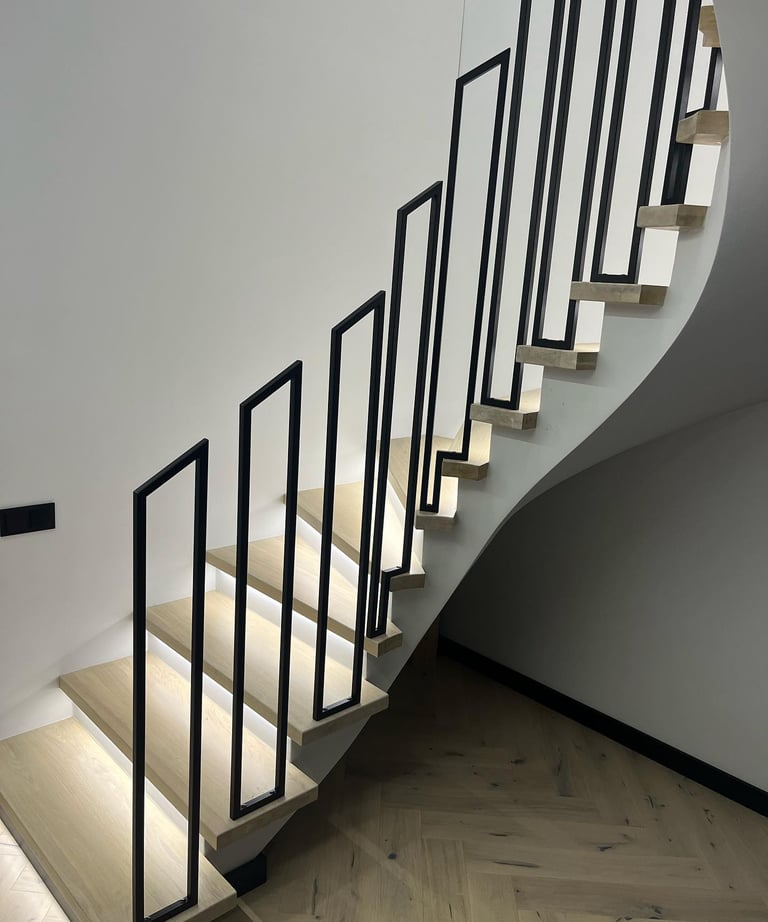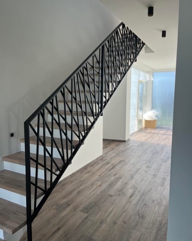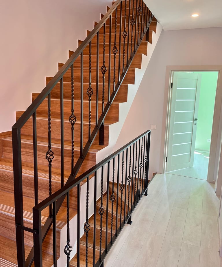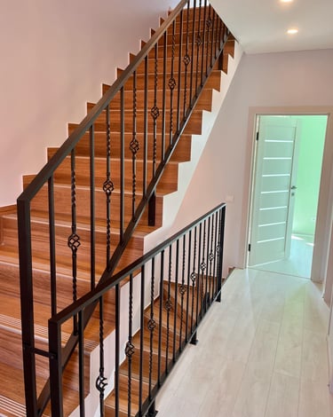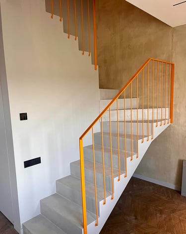 Vidaus ir lauko laiptai, laiptų turėklai, porankiai.