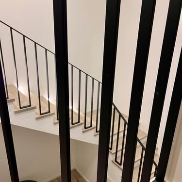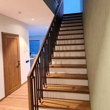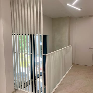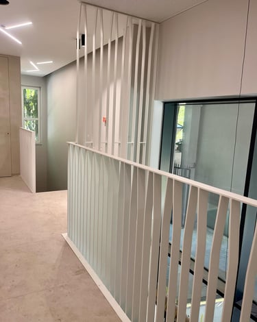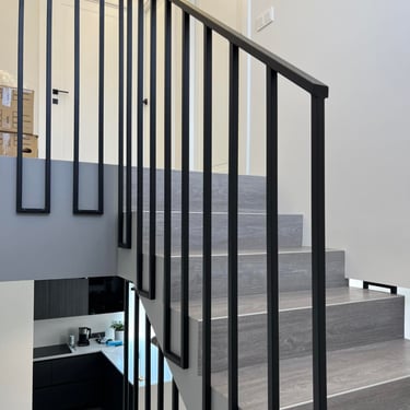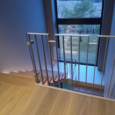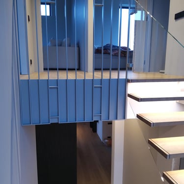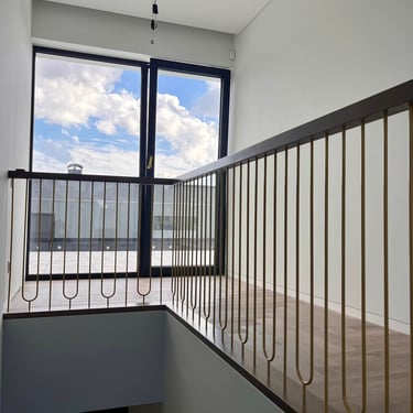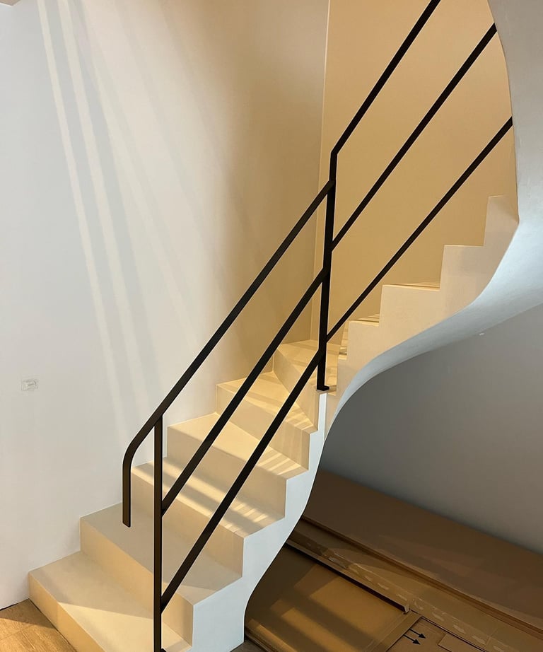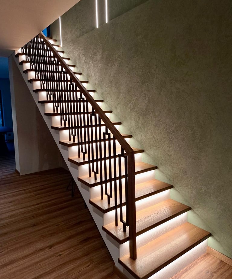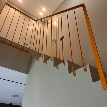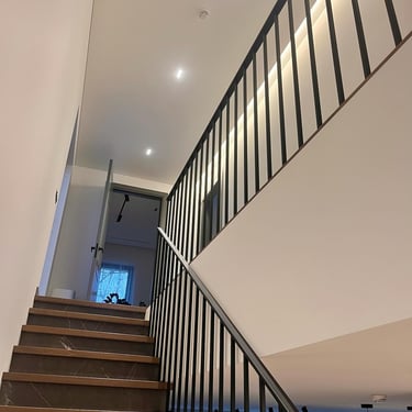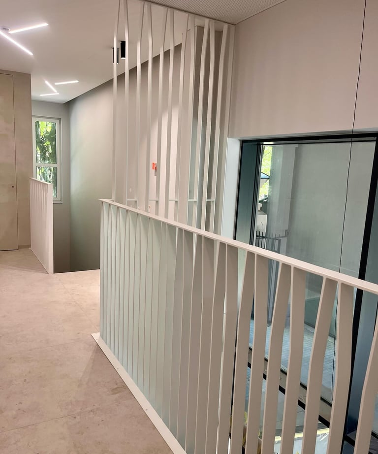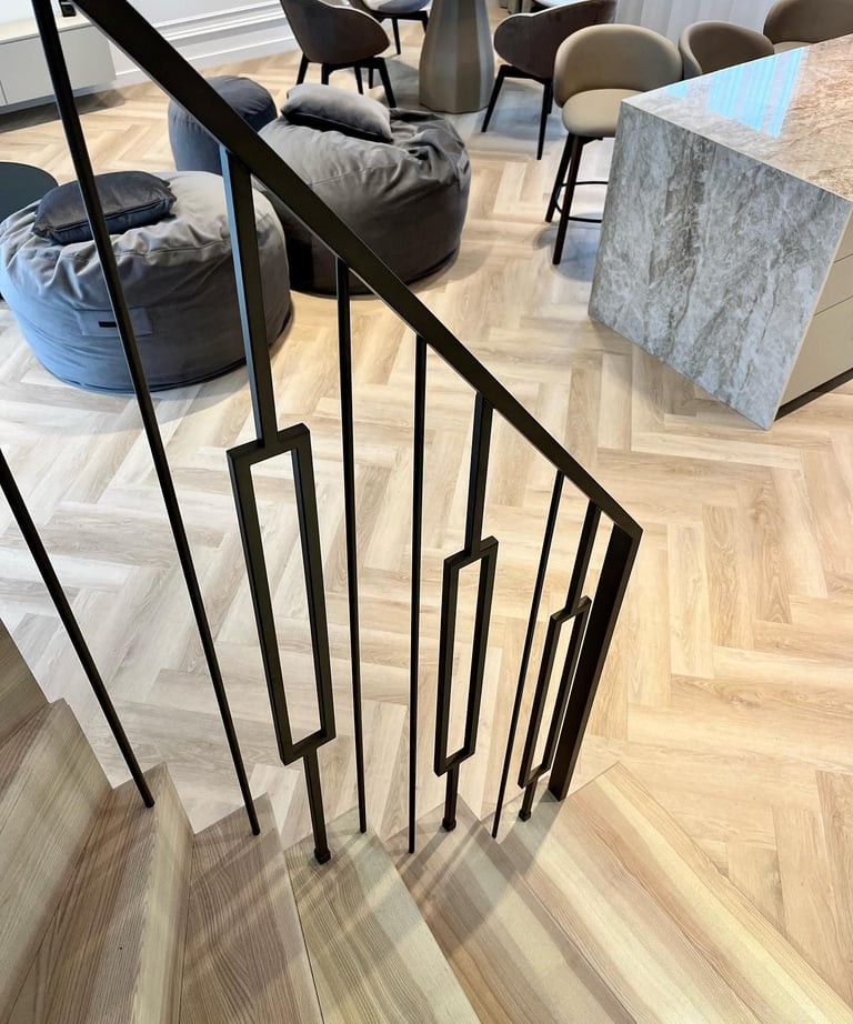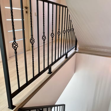 Laiptai, laiptų turėklai, turėklai iki lubų, porankiai.
