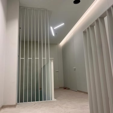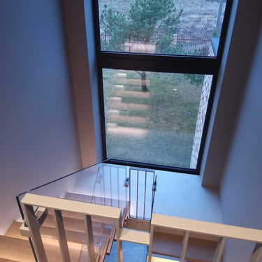 Skandinaviškos metalo ir stiklo durys. Žaliuzės ir stiklinės pertvaros.