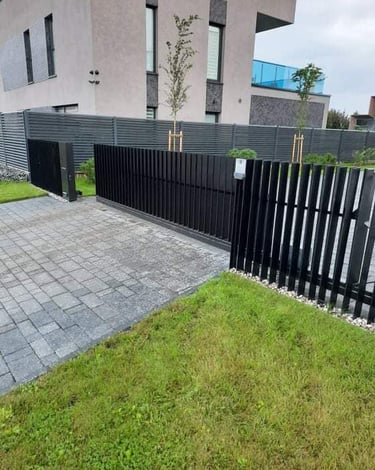 Įvairaus dizaino tvoros, stumdomi ir varstomi vartai, varteliai.