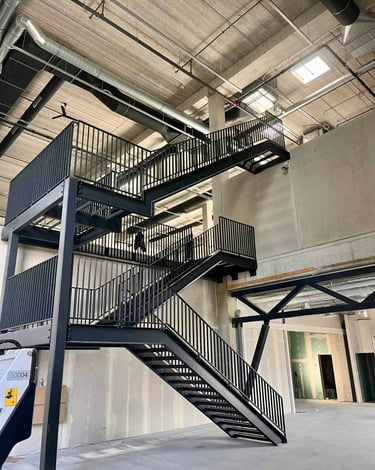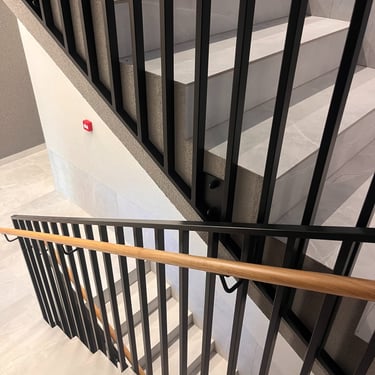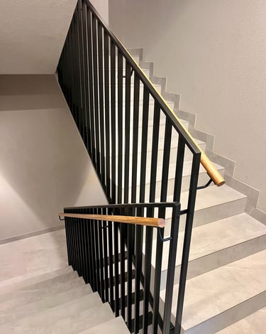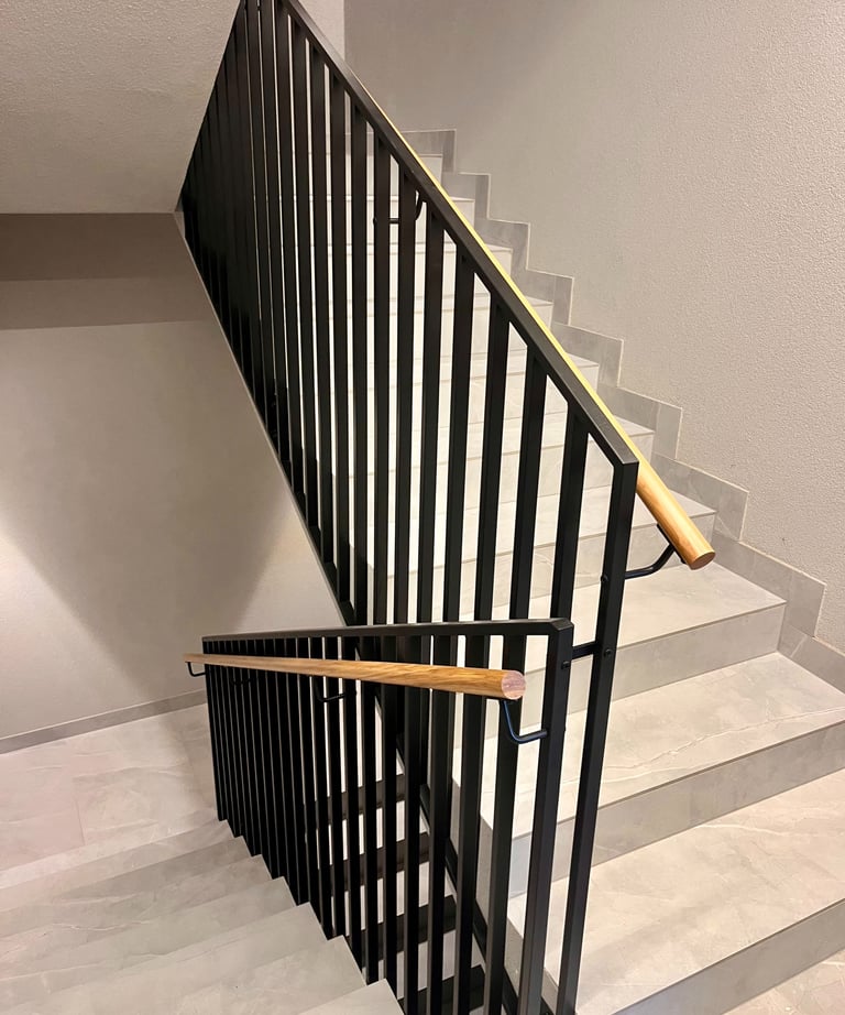 Vidaus ir lauko laiptai, laiptų turėklai, porankiai.